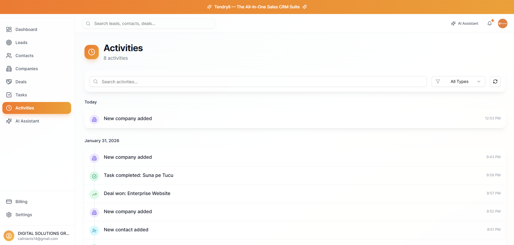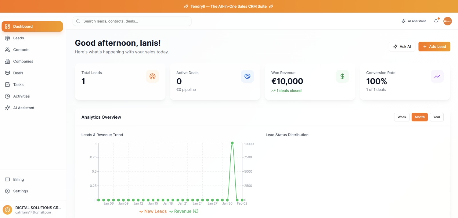 your CRM account in 30 seconds. Track leads,