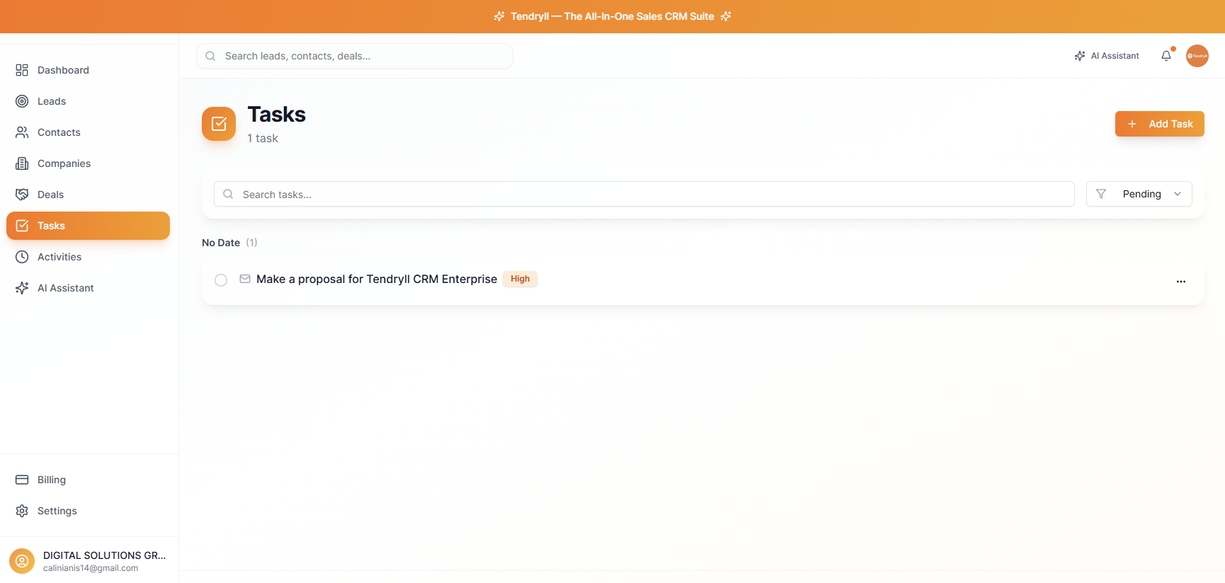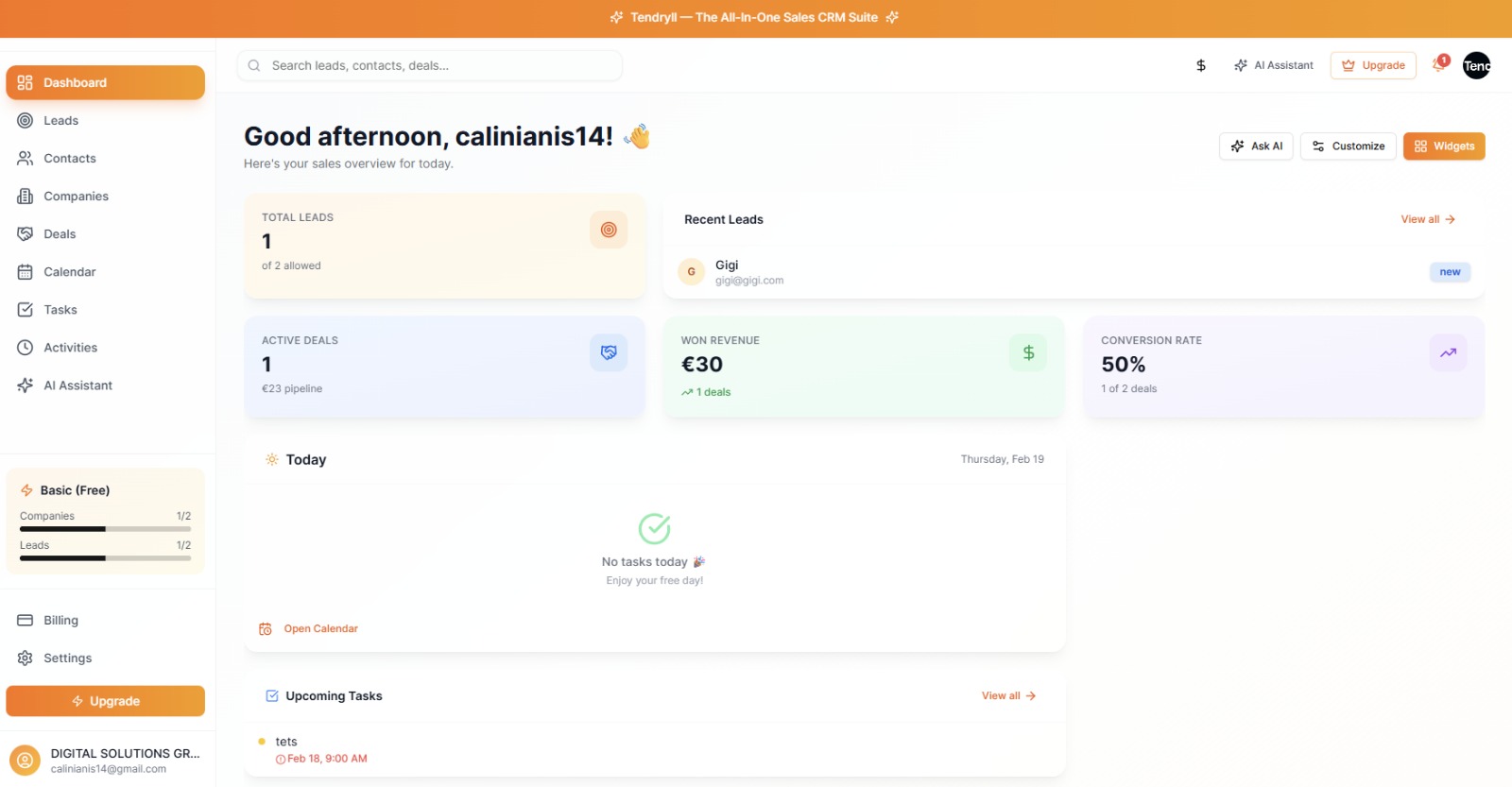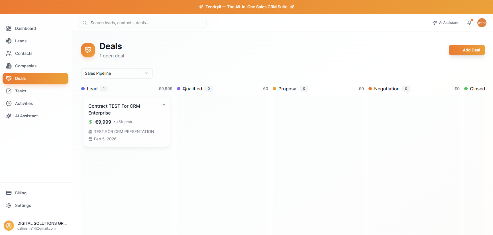 Track leads, deals, tasks and revenue in one place. No setup.
